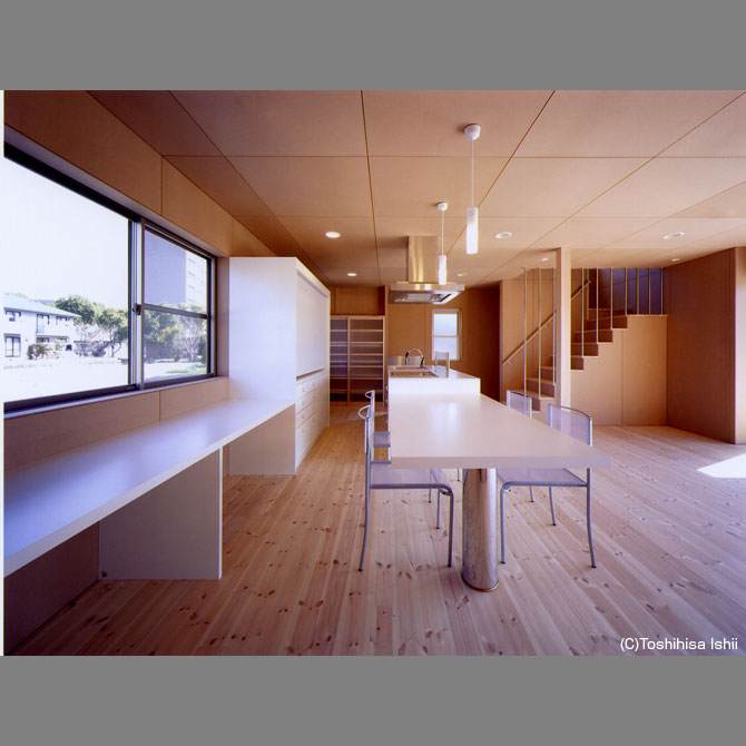 - ローコスト箱型住宅。敷地は佐賀特有の軟弱地盤で、基礎工事に多くの予算を割かねばならず、本体工事はかなりのローコスト化を要求されました。