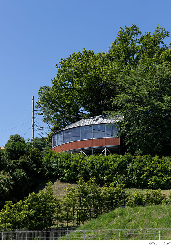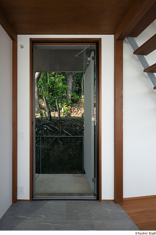敷地は国定自然公園内に位置し、斜面の勾配は約45度に及ぶ。