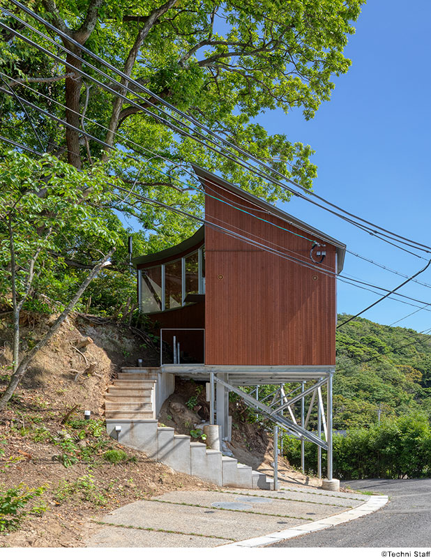 このような急峻な地形では、通常は大規模な造成や擁壁によって地形を整える必要がある。